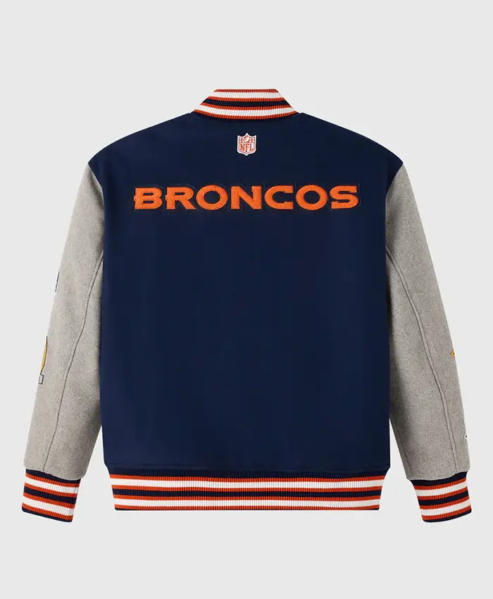 NFL Denver Broncos Navy and Grey Varsity Jacket