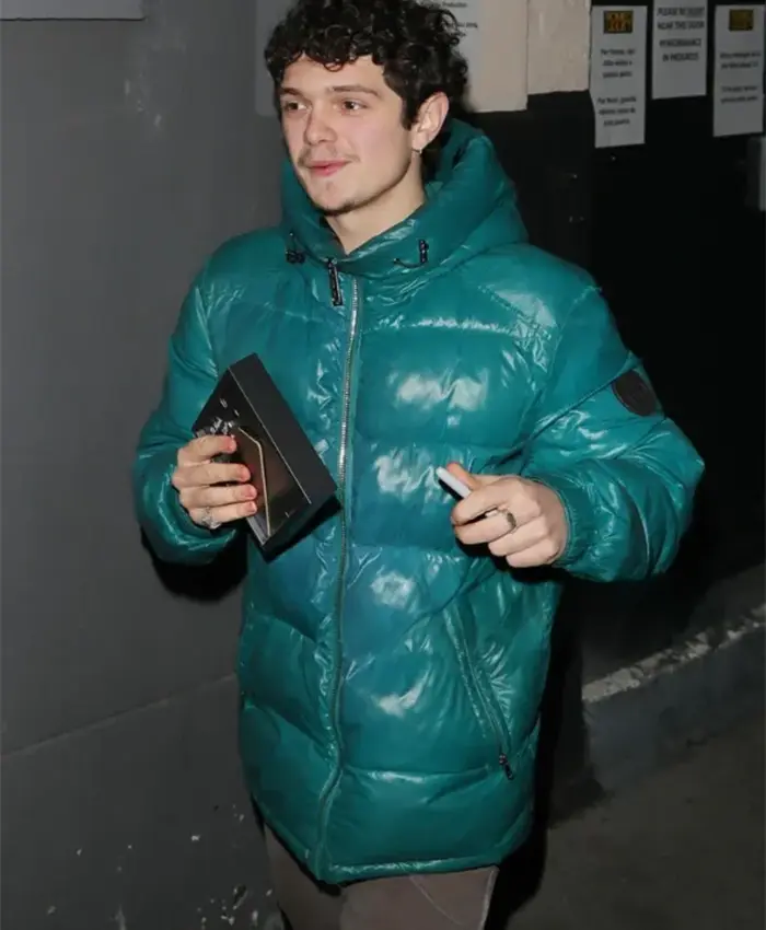 Noah Jupe Harold Pinter Theatre 2026 Green Hooded Puffer Jacket