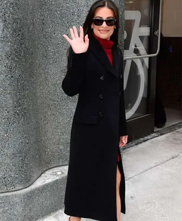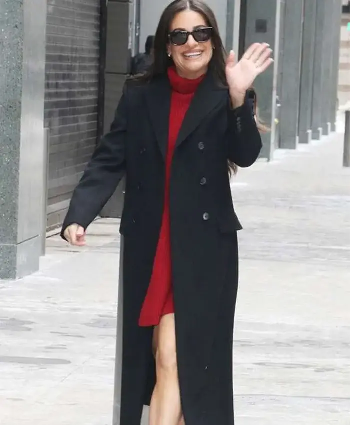 NYC 2026 Lea Michele Black Wool Coat