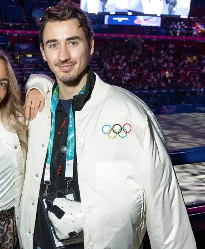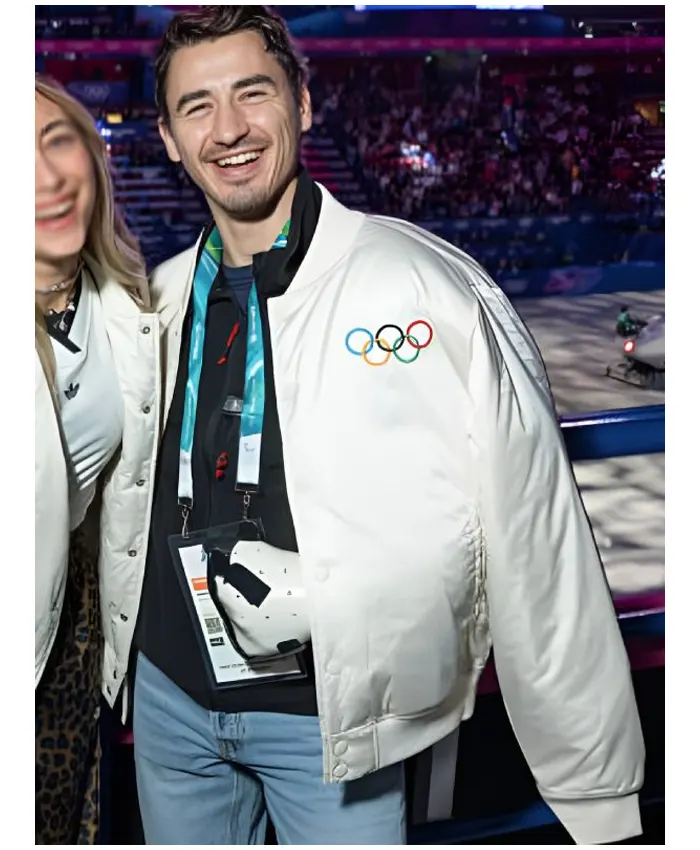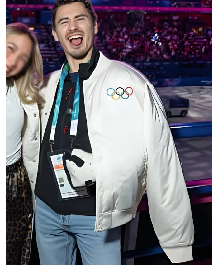 Charles Poujade 2026 Winter Olympics White Satin Varsity Jacket