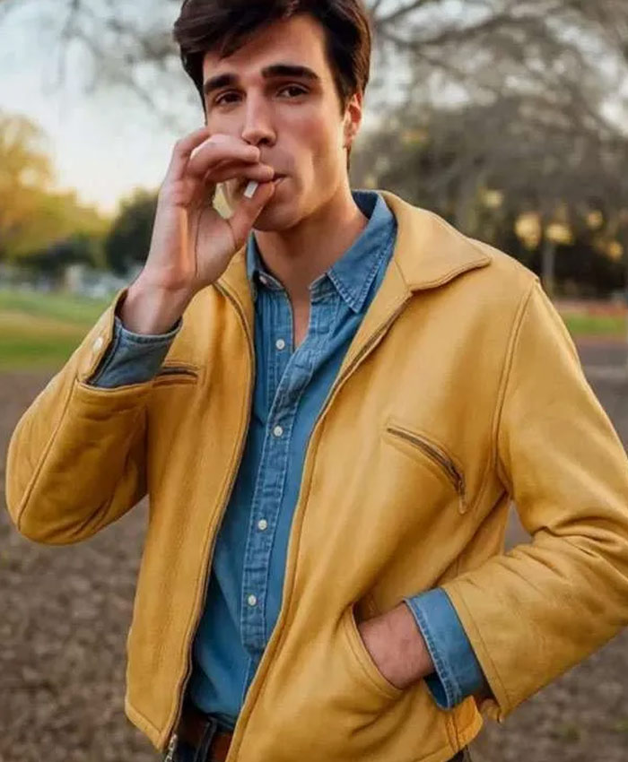 Jacob Elordi On Swift Horses Movie 2024 Julius Yellow Leather Jacket
