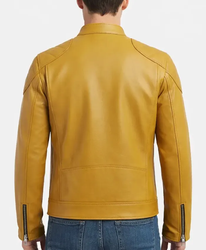 Men’s Yellow Cafe Racer Leather Jacket