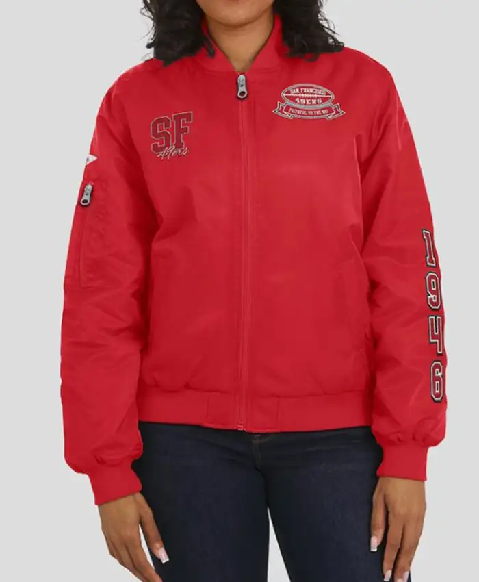 San Francisco 49ers Scarlet Patch Bomber Jacket