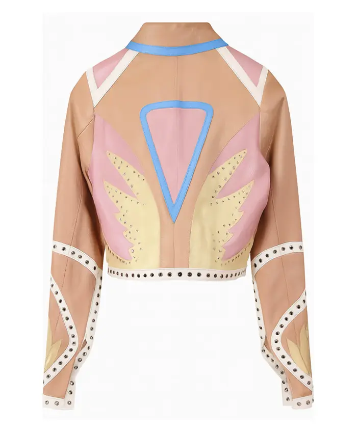 Sarah Hadland TV Series Daddy Issues 2025 Rita Studded Cropped Pastel Leather Jacket