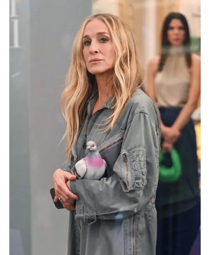 The loose-fitting cotton fabric gives you the breathable coverage, whereas the inner viscose adds support to the jumpsuit. This Just Like That Drama Series S02 Sarah Jessica Parker Green Jumpsuit offers urban detailing such as YKK zipper style and buttoned cuffs on long sleeves. At the same time, the stand-up collar style, multiple roomy pockets add functional value to this piece. So, get yours now, and get ready to up your rizz game with this phenomenal piece.