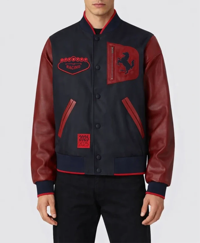 Scuderia Ferrari Q-Cycle Nylon & Leather Bomber Jacket