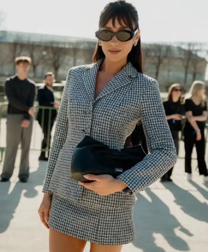 Shay Mitchell Dior Fall 2026 Houndstooth Blazer