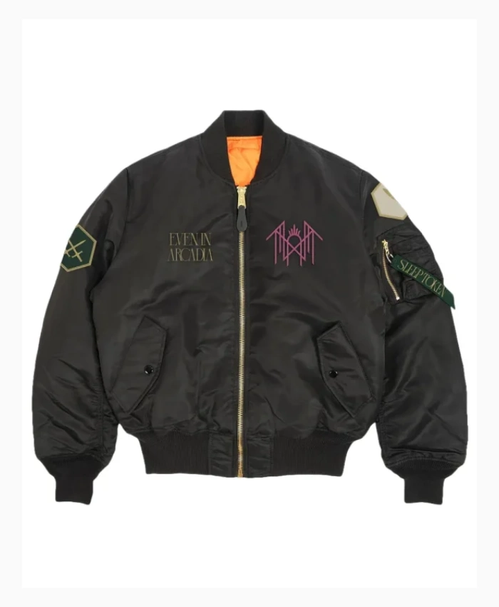 Furthermore, Sleep Token Even in Arcadia Custom Black Bomber Jacket has plenty of space to keep your essentials safe. This unisex bomber jacket has two-buttoned flap patch pockets on the waist and two inside pockets. The black color lends this jacket a classy and timeless look. What makes this a wardrobe must-have for men and women is this jacket’s versatility.Â