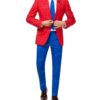 Step into the spotlight with a spider-man Tuxedo Red Dress Suit, a sharp and stylish attire that is inspired by the attraction and charisma of the dear actor, who brought Spider-Man into life. This suit pays tribute to a standout moment in the Spider-Man Franchise. Where the character digs its superhero suit for a red and blue formal organization.