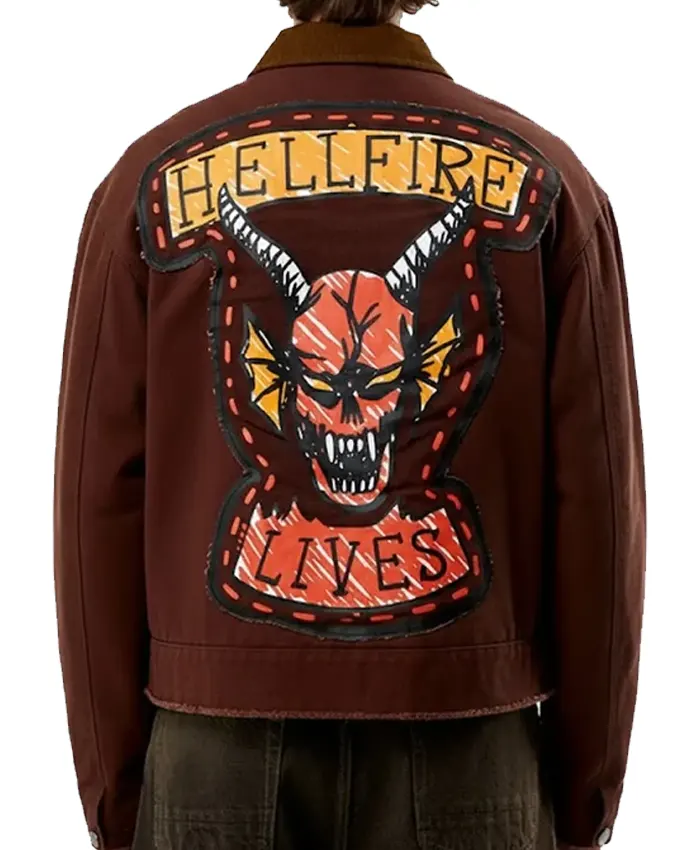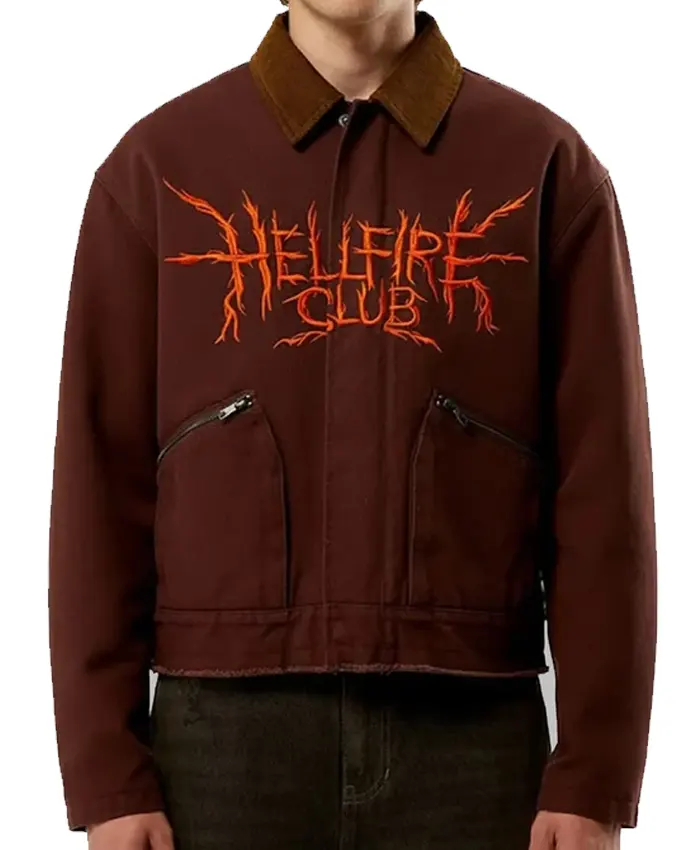 The show Stranger Things has captured the attention and focus of the youth for the past 10 years. This show has all the elements to do so, it features a young lead cast, suspense & thrilling story with supernatural characters. Moreover, the writers have crafted each character so thoughtfully that fans find them relatable. Beyond that, the show becomes even more interesting because of the Stranger Things Outfits. These articles are very detailed, they capture the 80s vibe and also describe their characters. Moving on, the recently hit apparel associated with this show is the Stranger Things Jamie Campbell Bower HellFire Lives Jacket. Jamie Campbell, who plays Henry Creel, later Vecna, the main villain wears this article. Likewise, the cool graphic design and detailing give a fun nod to the Hellfire Club.