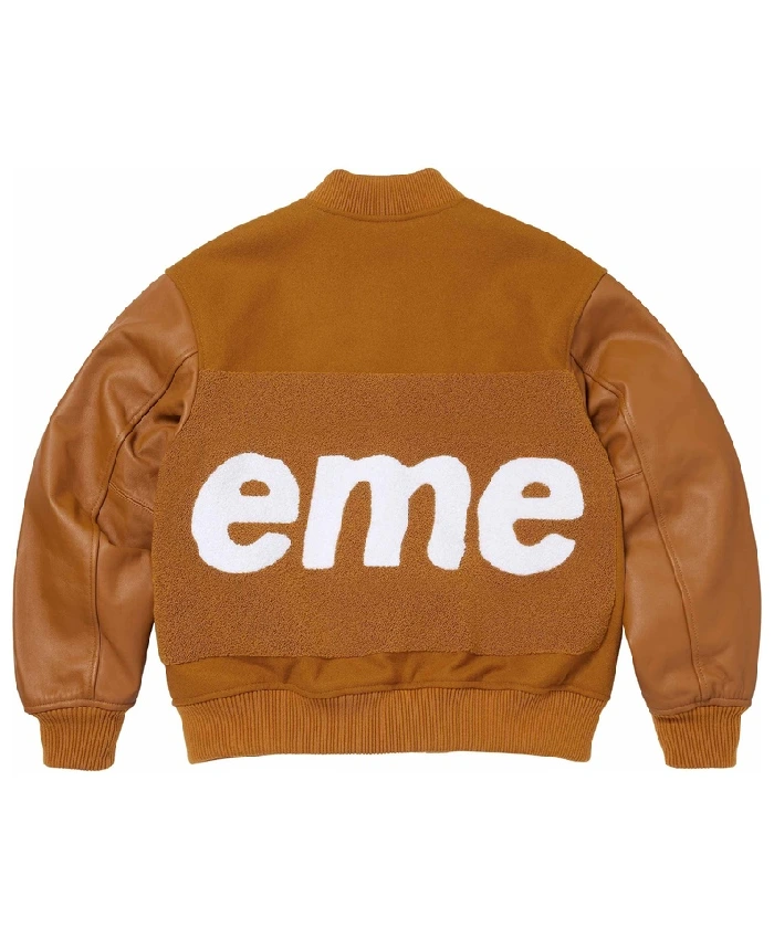 Supreme Logo Chenille Full-Snap Brown Varsity Jacket For Men and Women