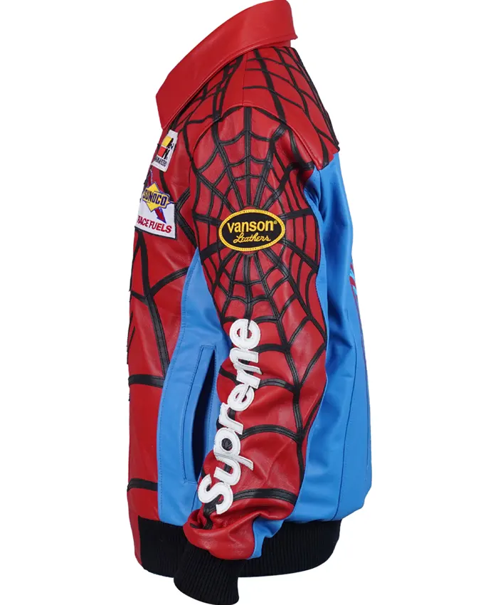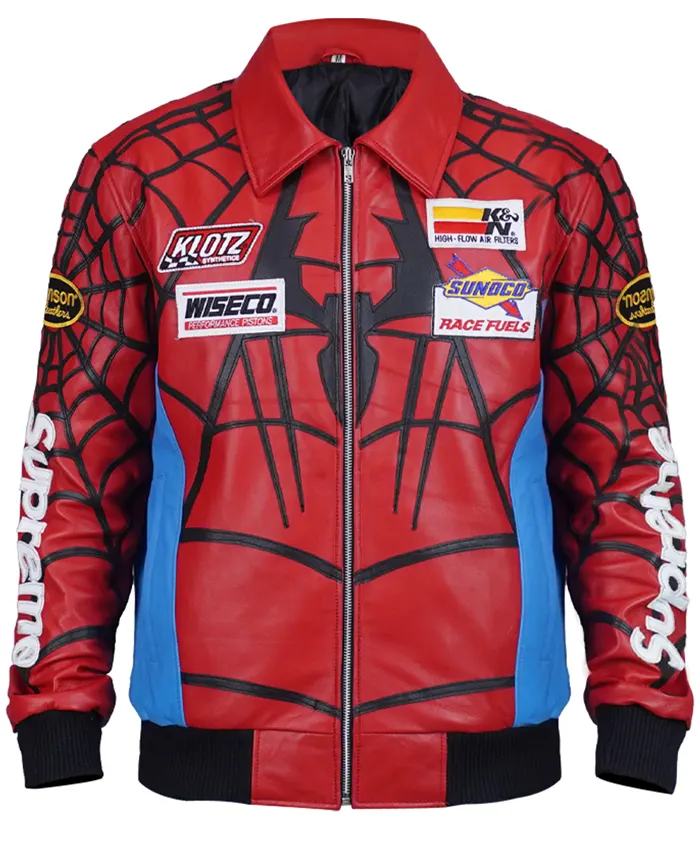 With great power comes great responsibility.’ It’s time to embrace the latest fashion styles and become a hero in someone else’s life. When you have the potential to judge trend-setting outfits, then you shouldnt miss out on the Supreme Spider Man Leather Jacket. Moreover, while for many fashion enthusiasts this jacket might be just another piece of clothing, being a fashion nerd and Spidey fan, you know the importance. Furthermore, this ensemble features power, strength and courage, things you generally associate with Spider- Man. On the other hand, while these aspects are enough for you to buy this product from Oskar Jacket. Let us explore the design in detail so you can make up your mind.