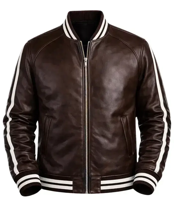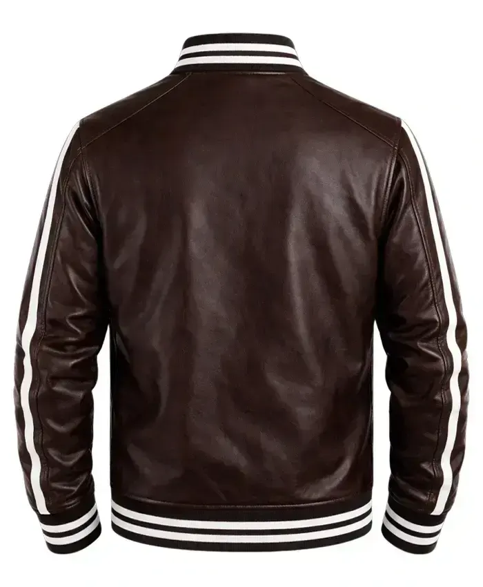 Casual Brown Leather Varsity Jacket