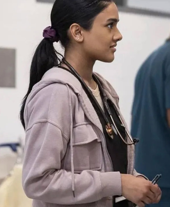 Dr. Victoria Javadi The Pitt Tv Series Shabana Azeez Light Purple Hooded Jacket