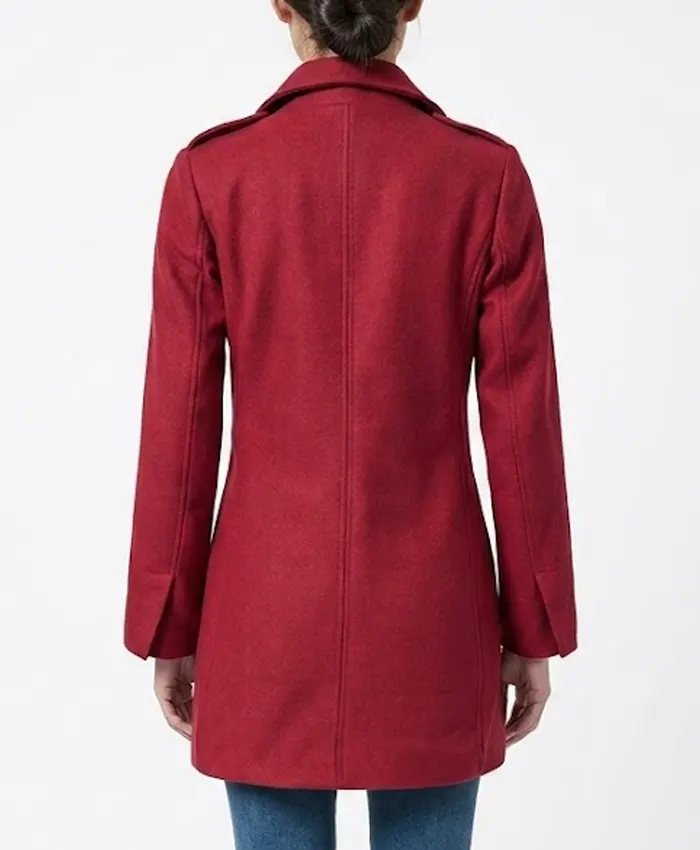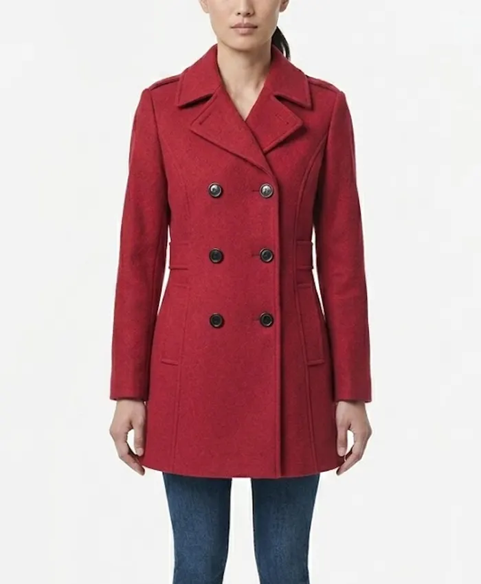 The Scarlet Peacoat: Women’s Double-Breasted Classic Red Wool