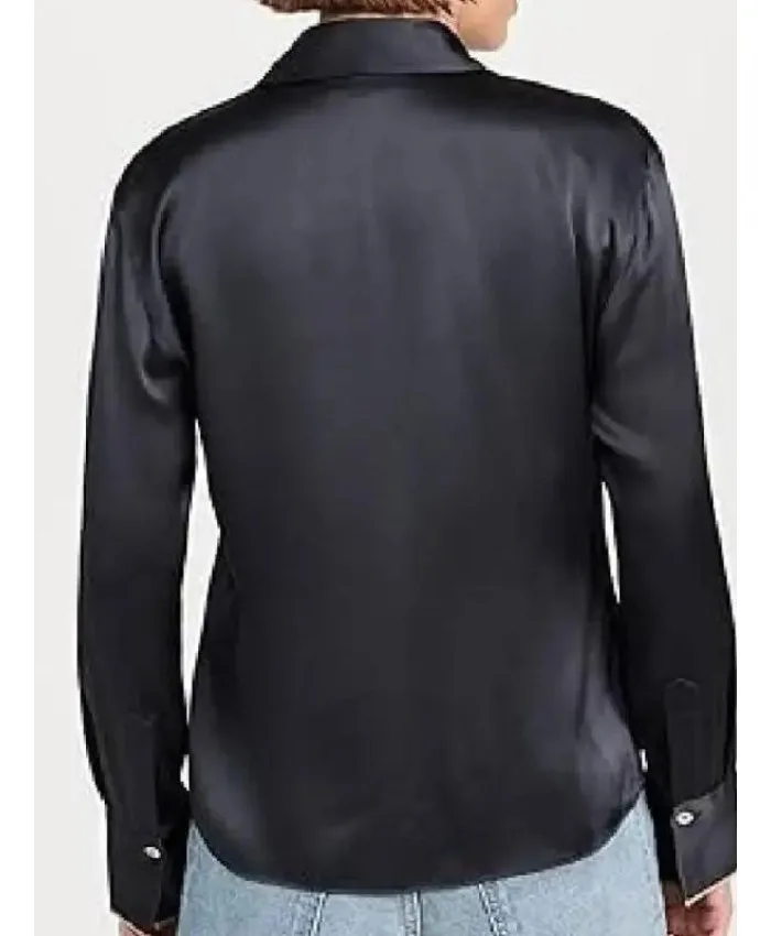 It can be your staple signature-worthy piece that can be paired with either ripped jeans or blazers, heels or sneakers, it will add a polished look to your outfit. It’s an easy grab on the days when you feel like you have nothing to wear. The Waterfront 2025 Melissa Benoist Black Shirt is an eye catcher because of its silky smooth texture; however, it cannot be an overwhelming piece as its classic button style collar and cuffs give it a subtle vibe. The black colored blouse has a button-style front closure and full sleeves, finalizing the apparel into a whole package.