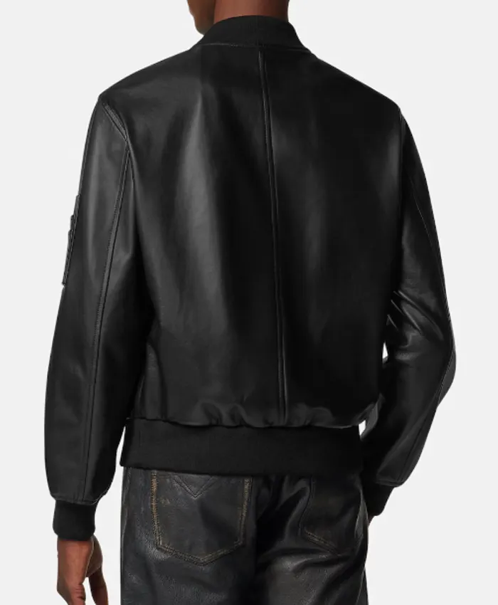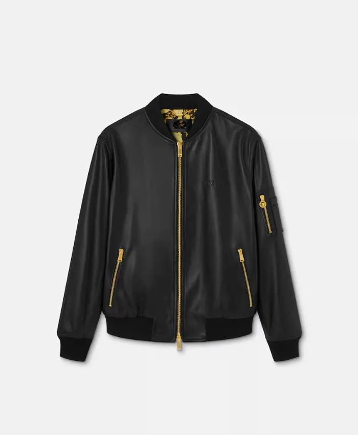 Versace Black Leather Bomber Jacket